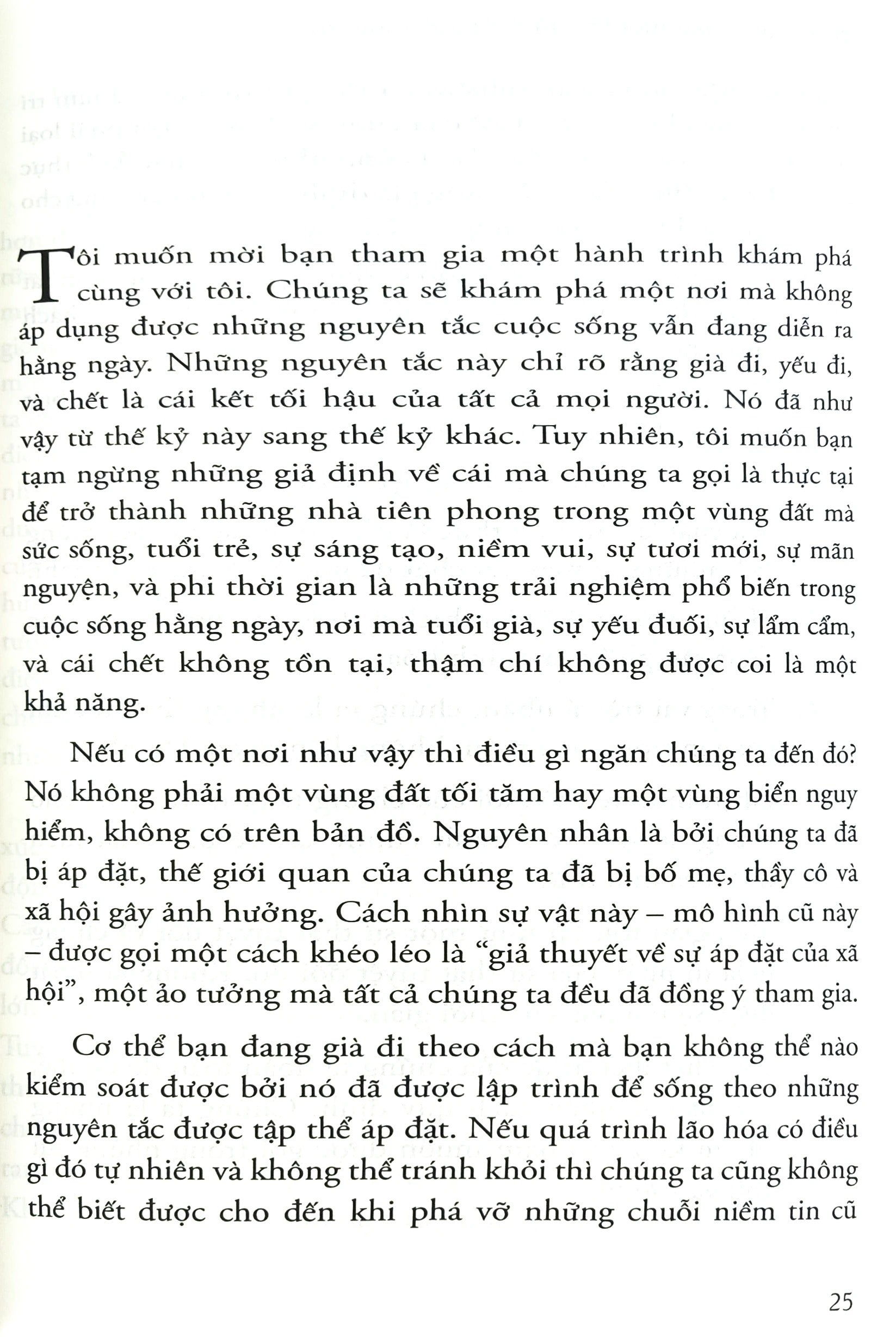 Có một sự thật thú vị về lão hóa: chưa ai từng chứng minh nó là điều bắt buộc. Khoảng 20 năm trước, khi cuốn sách này ra đời lần đầu tiên, nhận định ấy đã gây ngạc nhiên. Và cho đến hôm nay, nó thậm chí còn đúng hơn.