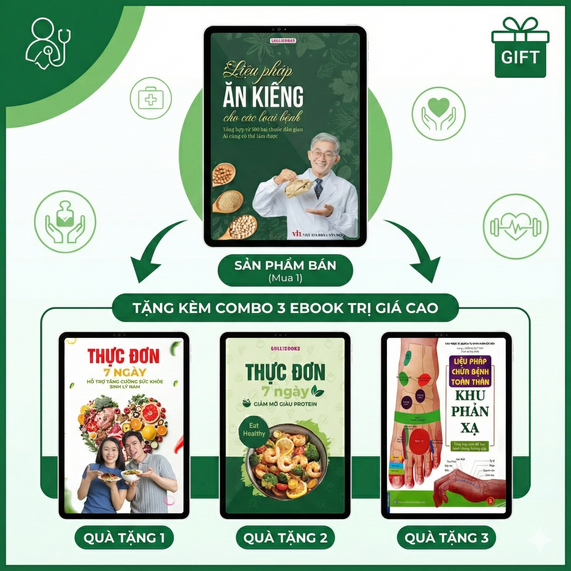 EBOOK: LIỆU PHÁP ĂN KIÊNG – TẶNG KÈM COMBO 3 EBOOK SỨC KHỎE (Thực đơn 7 ngày tăng cường sức khỏe sinh lý nam, Thực đơn 7 ngày giảm mỡ giàu protein, Liệu pháp chữa bệnh toàn thân bằng khu phản xạ)