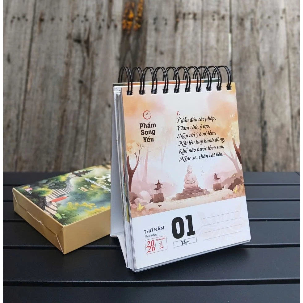 LỊCH BÍNH NGỌ 2026 - KINH PHÁP CÚ - 365 NGÀY SỐNG THEO LỜI PHẬT DẠY