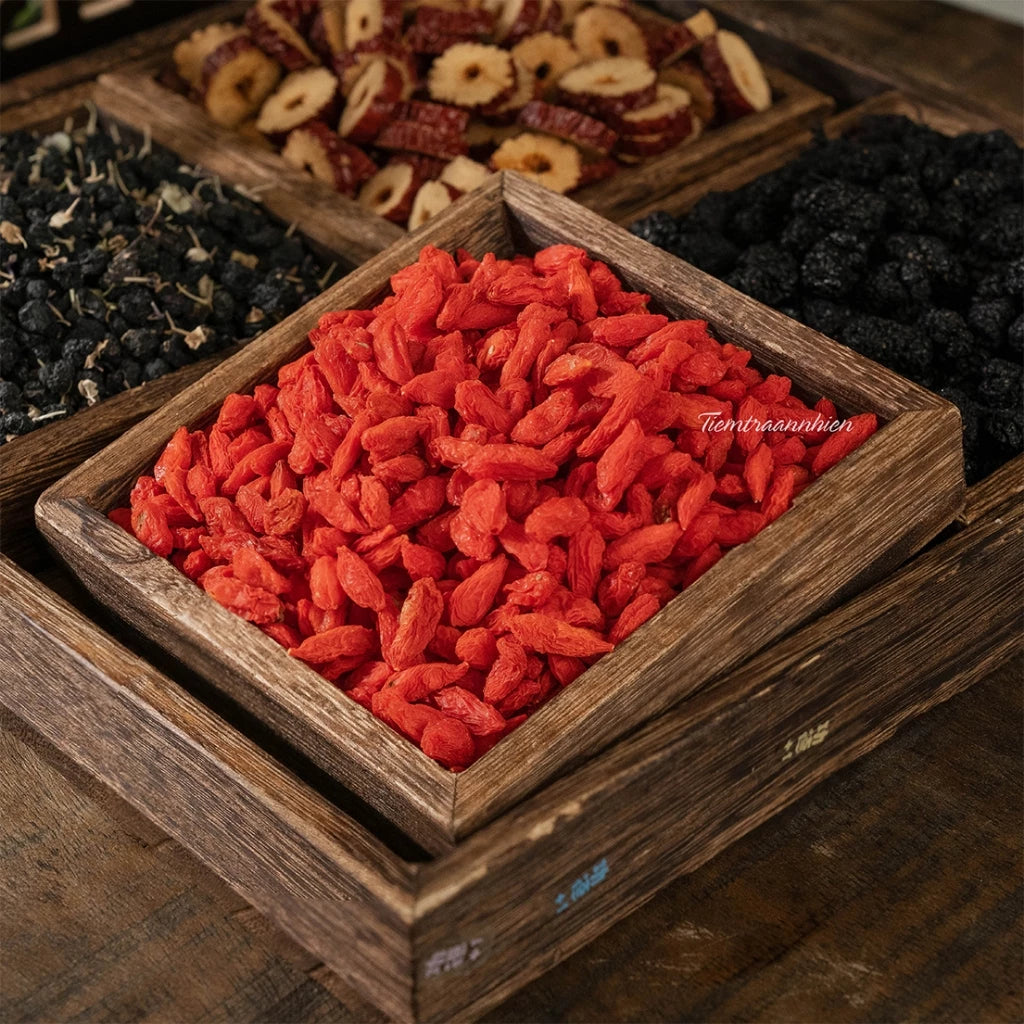 Mộc Trà Sinh Huyết với những thành phần mang nét hương của 4 loại thảo dược tự nhiên: Hắc kỷ tử, Dâu tằm, Táo đỏ, Kỳ tử Ninh Hạ